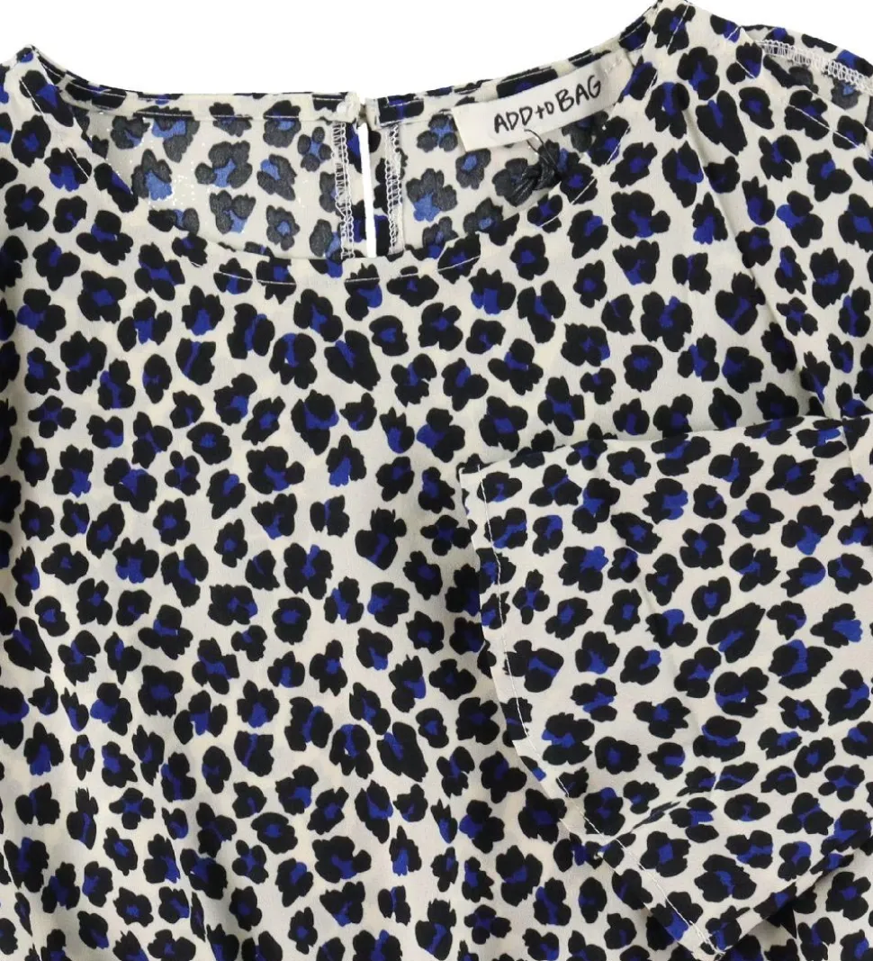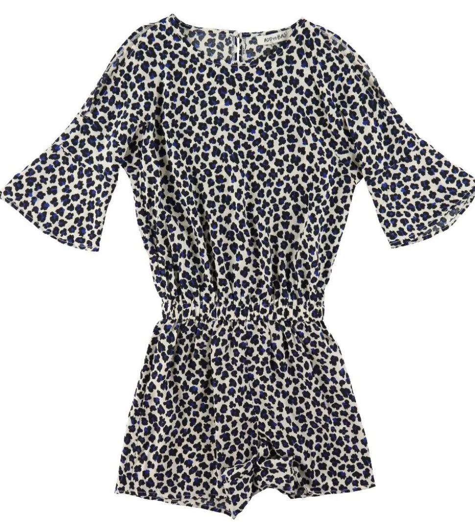 Sej Add to Bag buksedragt i råhvid med et leopardprint i sort og blå.