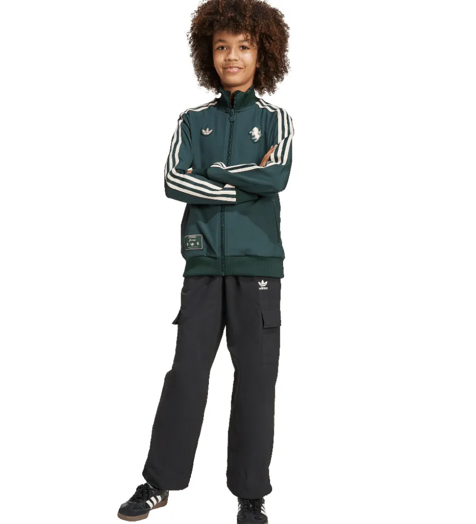 Smart cardigan fra adidas Originals i mørkegrøn med hvide logostriber, og fortil er der et logo for den engelske italienske Juventus.