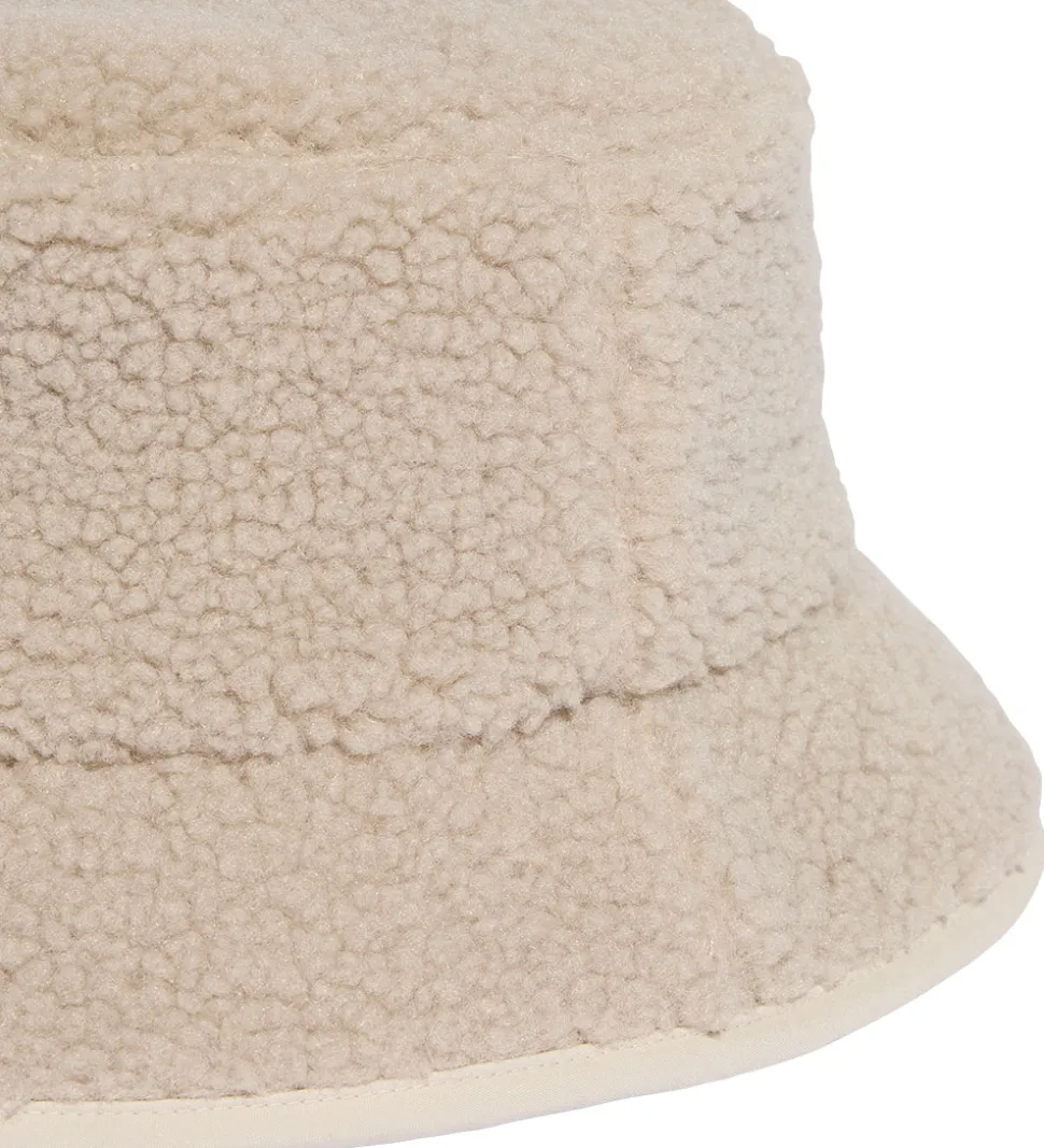 Veldesignet adidas Performance bøllehat i en behagelig lys beige nuance. Hatten har en rund hovedform med en flad top. Materialet er blød og tekstureret, hvilket giver den en unik teddy overflade. Fortil ses adidas Performance logoet diskret broderet, som tilføjer et stilfuldt touch. Den brede skygge er praktisk og giver en funktionel detalje til hatten.
