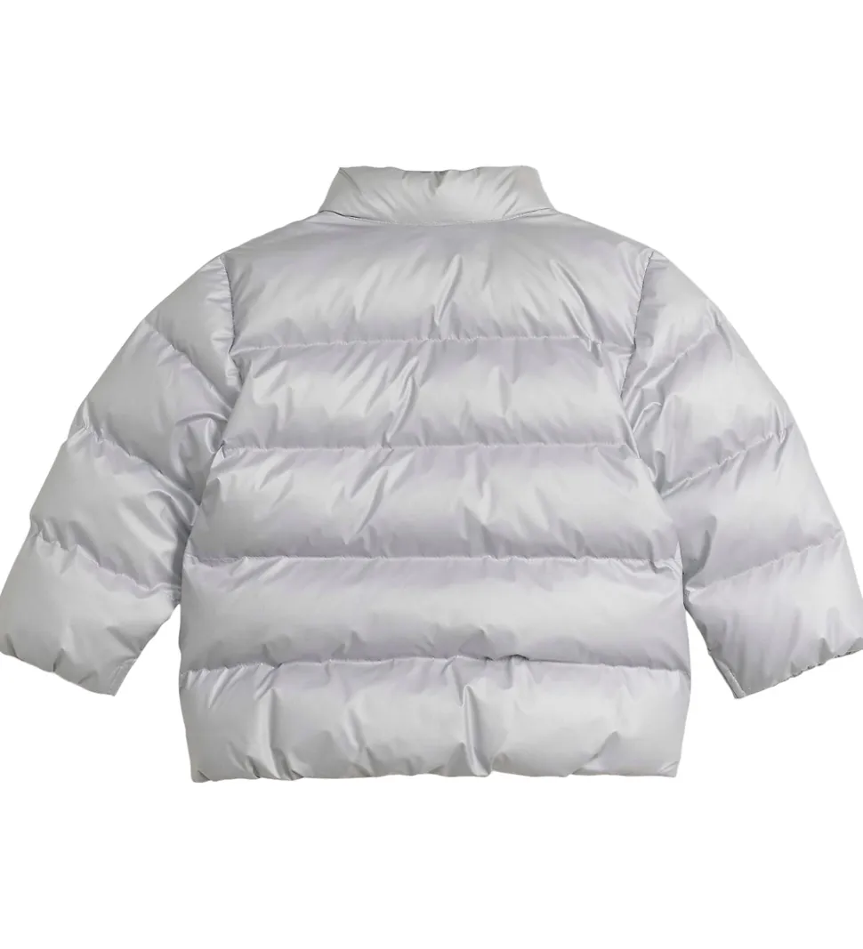 Smart adidas Performance dynejakke i metallisk sølv med vandrette syninger og et refleks logoprint på venstre bryst.