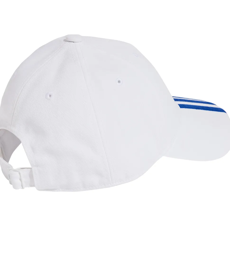 Smart adidas Performance kasket i ensfarvet hvid, med et Euro 2024 print fortil samt tre striber broderet i blå langs skyggen. Bagpå til venstre er der et blåt logoprint.