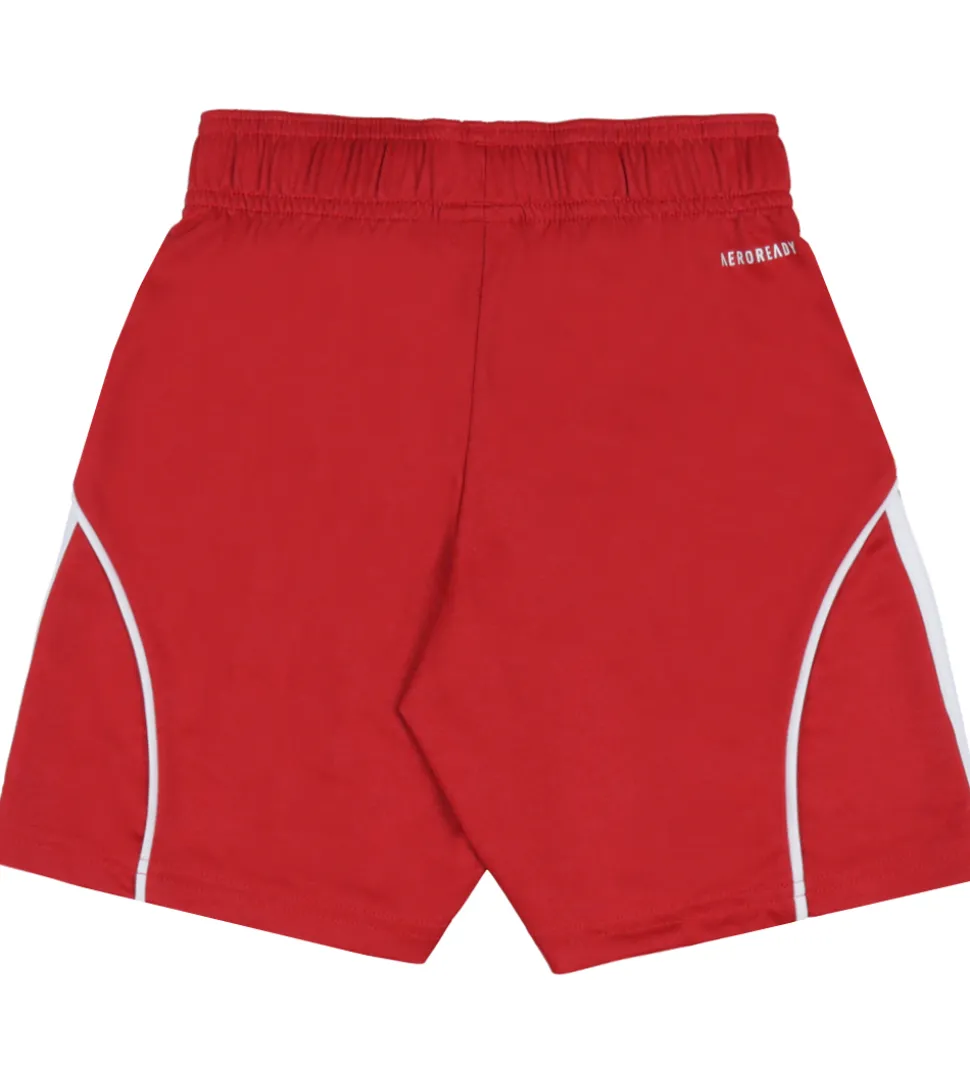 Funktionelle adidas Performance shorts i en iøjnefaldende, rød farve med markante, hvide striber langs siderne.