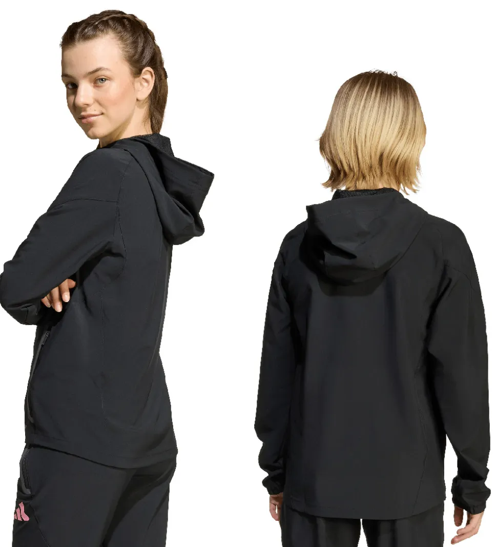 didas Performance træningsjakken har en fast hætte med et meshfor, og ærmerne har smalle elastikkanter. Træningsjakken lukkes med en lynlås med hagebeskytter, og i siderne er der praktiske lommer, som lukkes med en lynlås. Træningsjakken er lavet i en let strækbar kvalitet og med Aeroready-teknologi, som absorberer vand og sved, så man føler sig tør, mens man dyrker sport.