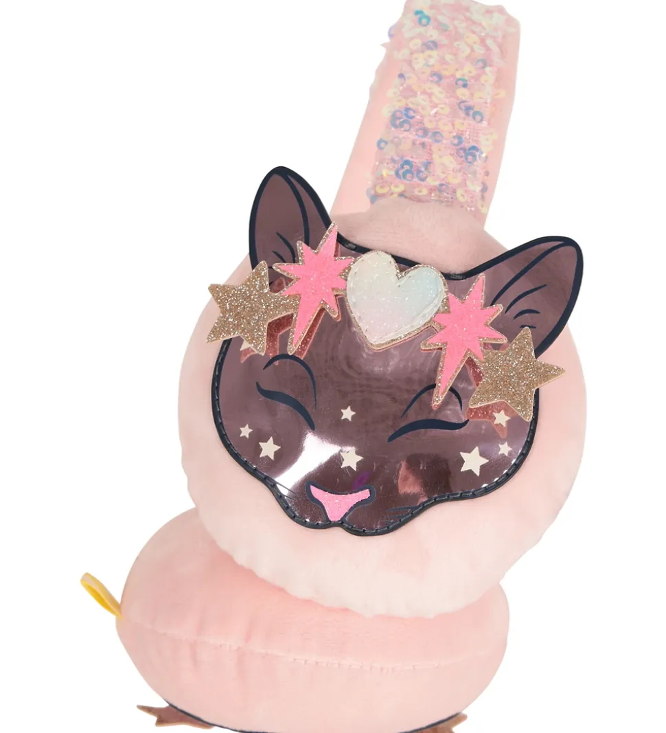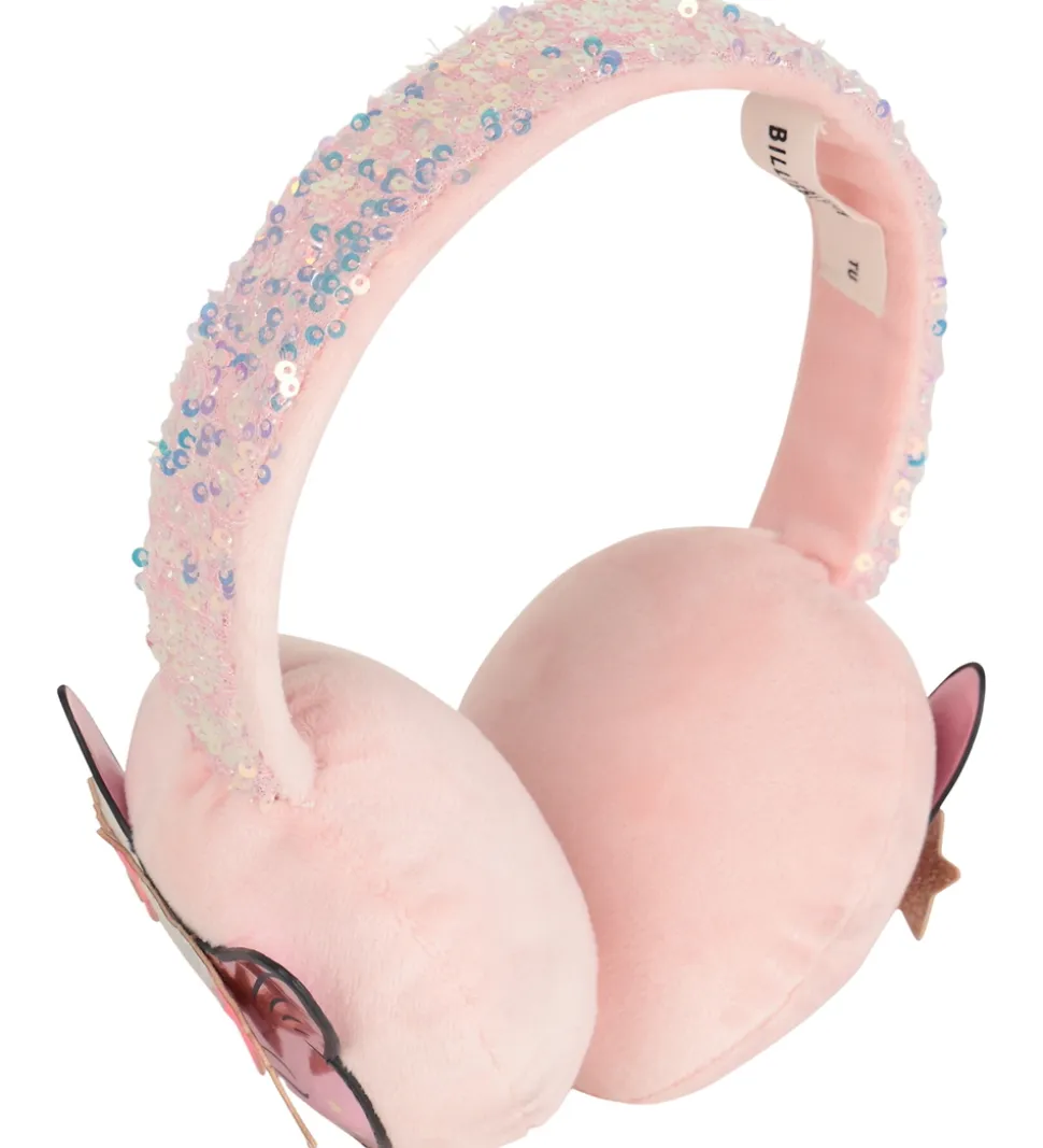 Festlige Billieblush ørevarmere i rosa med små, rosa palietter på buen og en blank applikation af et kattehoved med fine detaljer på hvert øre. Ørevarmerne består af to runde puder med en bue imellem dem, så de sidder godt fast på hovedet. De er bløde og behagelige at have på samtidig med, at de giver god varme til ørerne.
