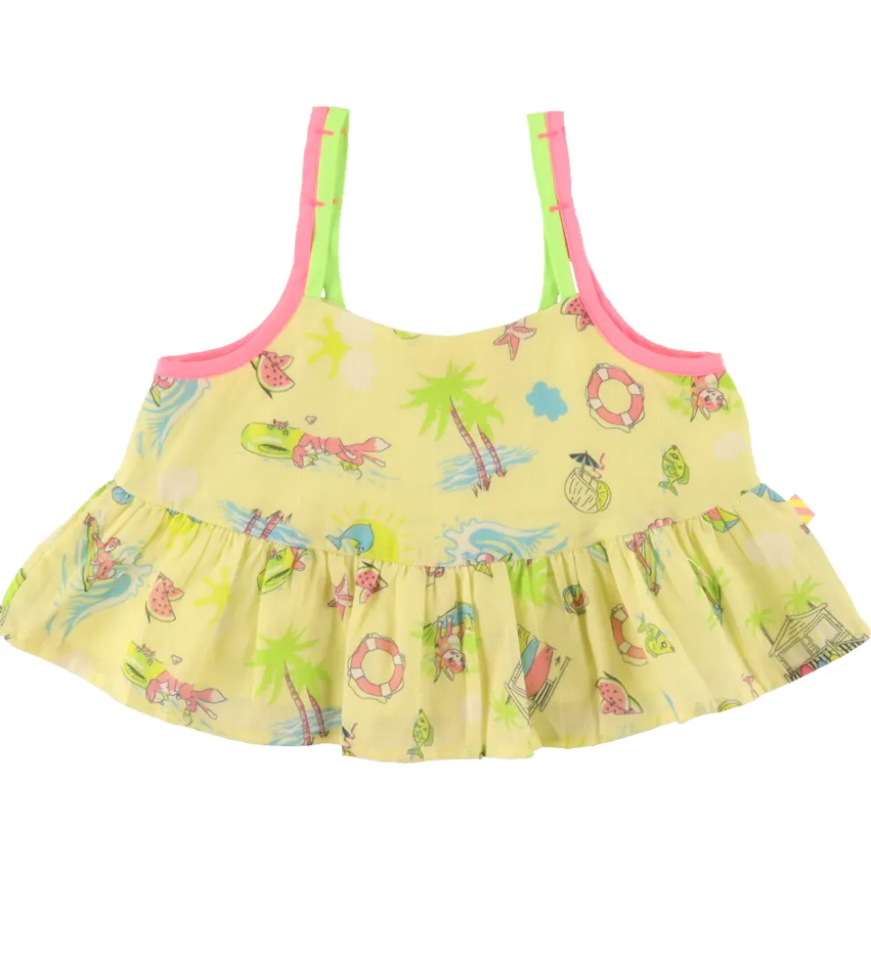 Skøn Billieblush top i gul med et smukt allover strand og surfprint.