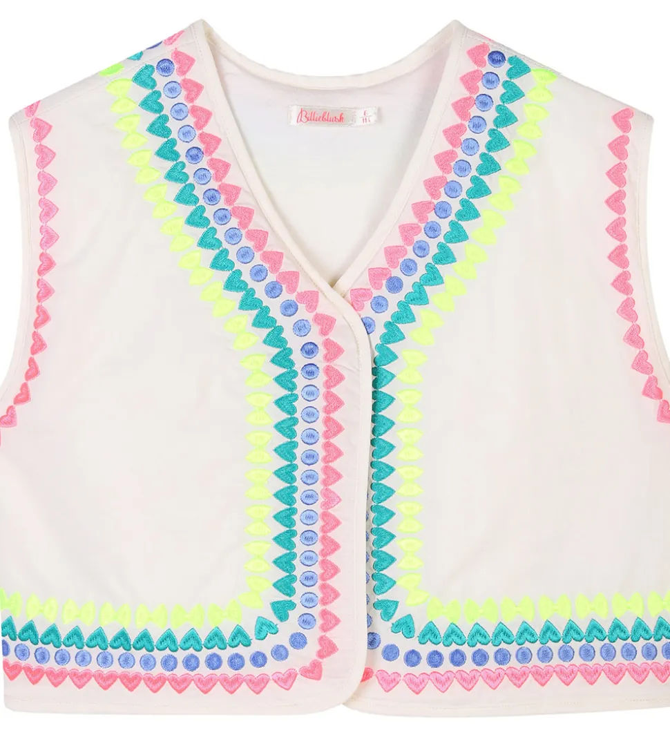 Flot Billieblush vest i hvid, og langs kanterne er der broderede mønstre i neonfarver.