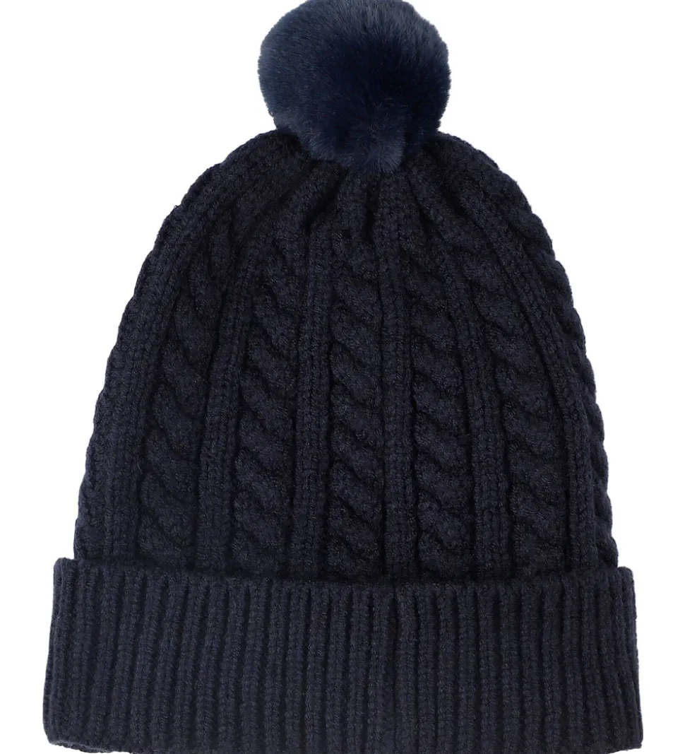Flot BOSS hue i navy i en strikket kvalitet og med ribstruktur. Huen har en pompon på toppen, der tilføjer et stilfuldt præg.Fortil står der “Boss” broderet i hvid. Huen har en spids form, og den består af et enkelt lag med et ombuk langs kanten.
