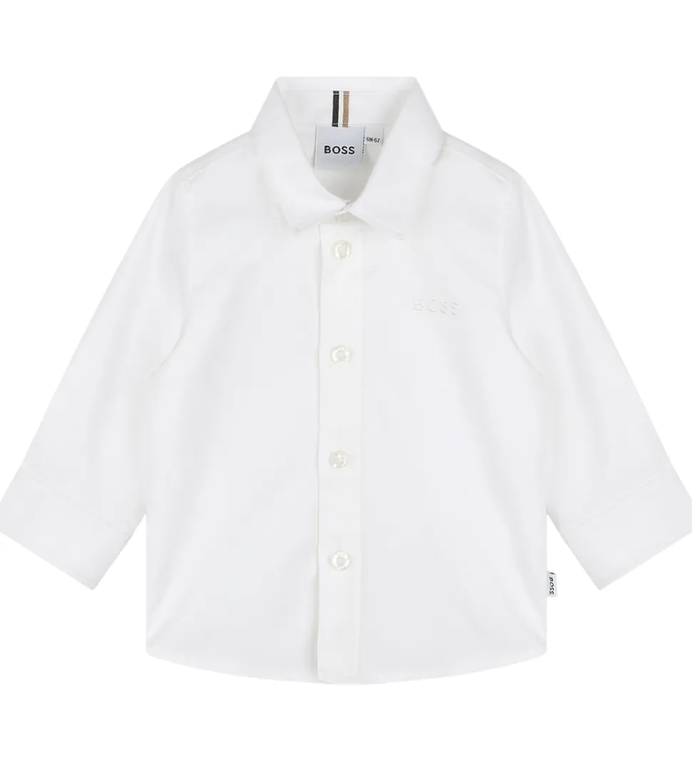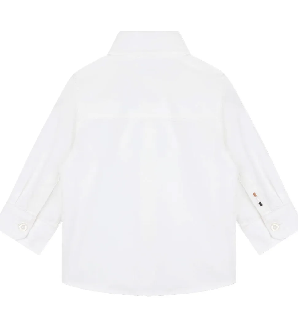 Stilren BOSS skjorte i klassisk hvid med broderet logo diskret placeret på brystet. Skjorten har en traditionel krave og lange ærmer, hvilket giver et tidløst udtryk. BOSS tilbyder med denne skjorte et elegant design, som kan bruges i mange sammenhænge.