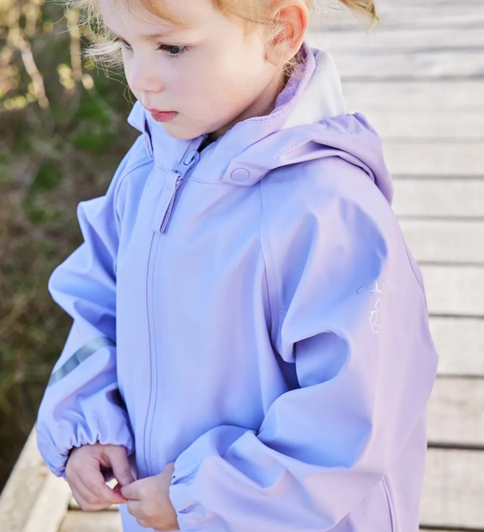Skønt CeLaVi regntøj af PU i ensartet pastellilla.