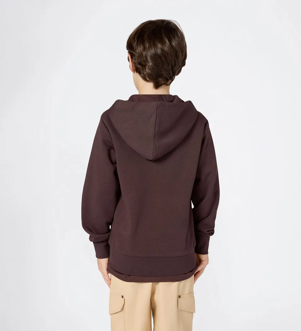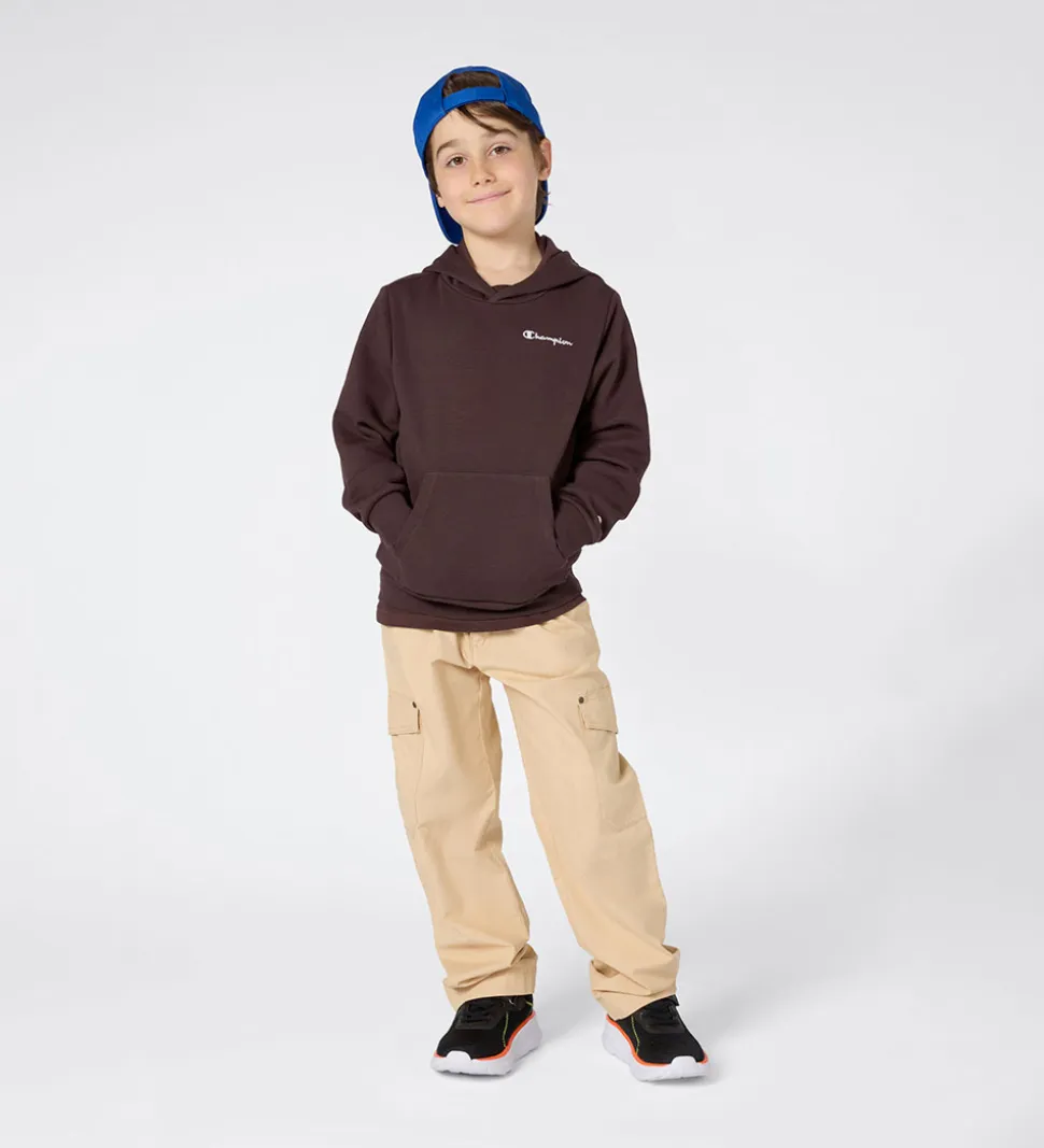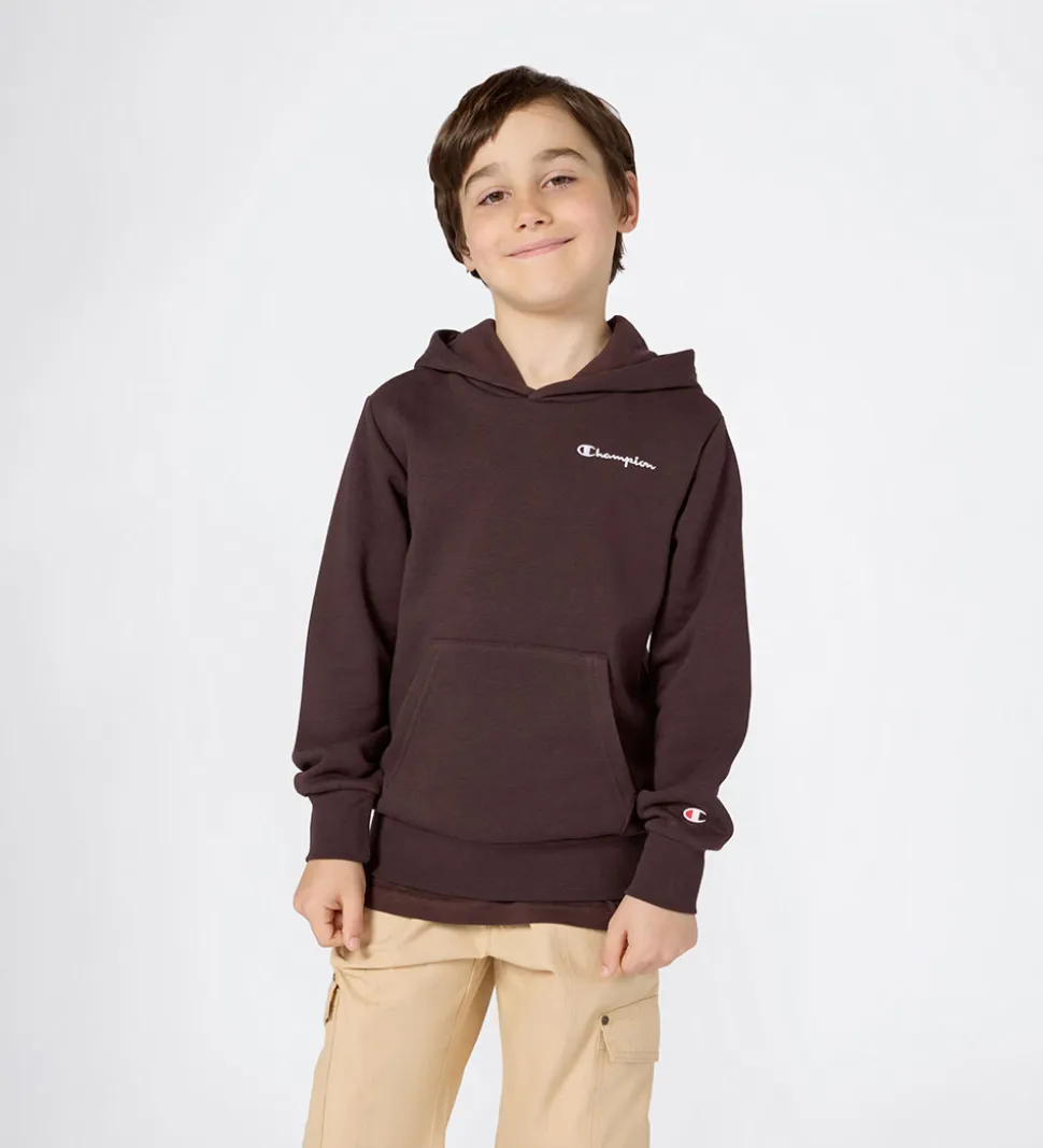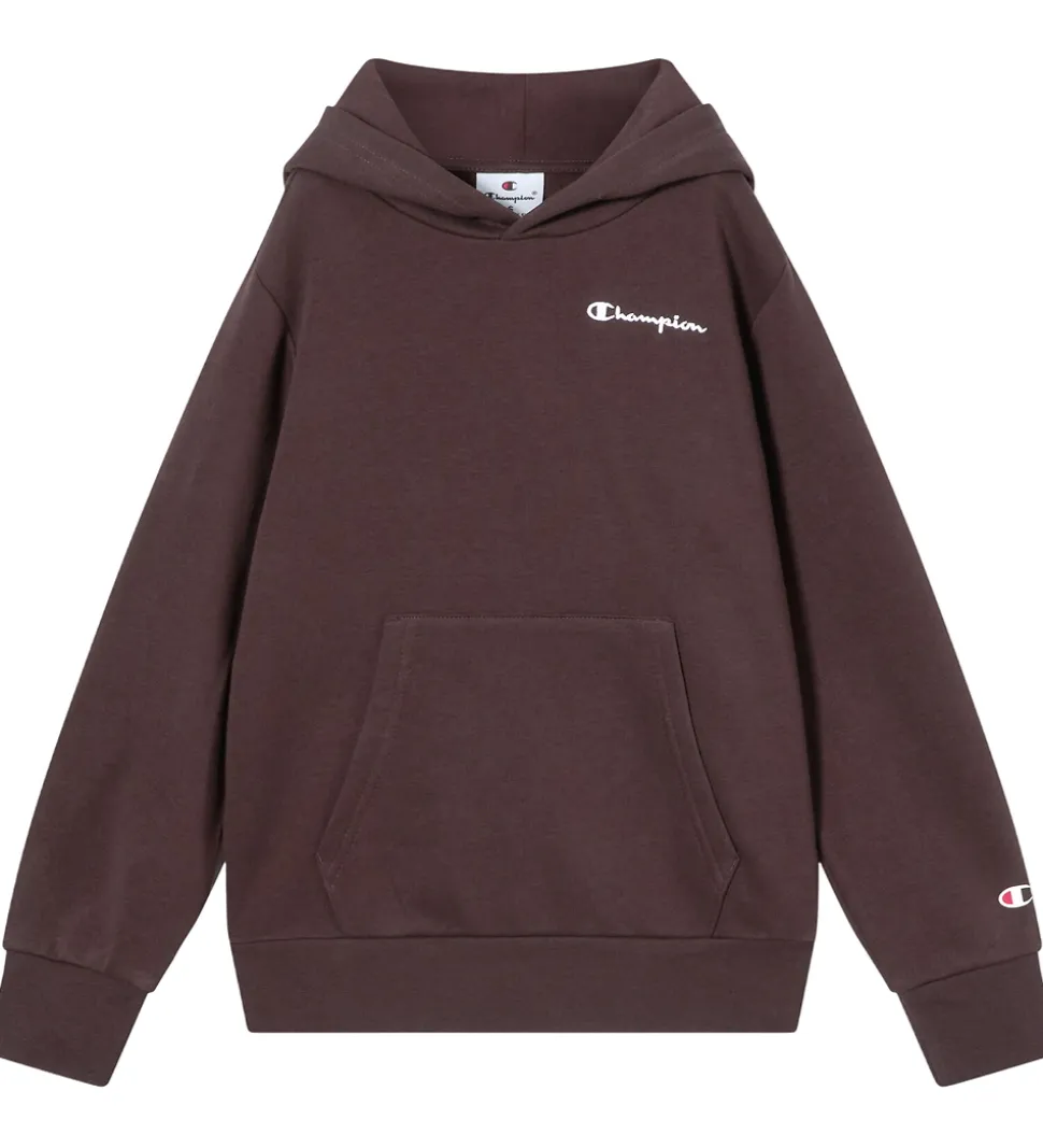 Stilfuld hættetrøje fra Champion i en varm brun nuance. Hættetrøjen har et hvidt, broderet logo på venstre bryst og et lille logoprint på venstre ærme. Champion hættetrøjen har en blød hætte og en rummelig kængurulomme. Den har ribkanter ved håndleddene og i livet, som giver en god pasform. Indvendigt er der blødt, børstet bomuld.