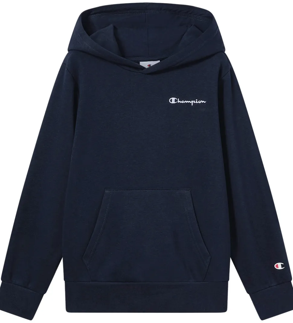Flot Champion hættetrøje i en dyb marineblå farve. Hættetrøjen har et lille, hvidt Champion logo på brystet samt et logo på det ene ærme. Champion hættetrøjen er designet med en praktisk kængurulomme foran. Ribkanter ved ærmerne og forneden giver hættetrøjen en klassisk pasform. På inersiden er der blødt, børstet bomuld.
