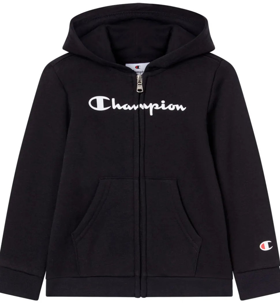 Champion cardiganen har en blød hætte, lange ærmer og åbnes fortil med en gennemgående lynlås. Fortil er der en opdelt kængurulomme. Sweatpantsene har en god elastik i taljen, som kan justeres med snører fortil. I benåbningerne er der brede ribkanter. Sweatsættet har blødt, børstet bomuld på indersiden.