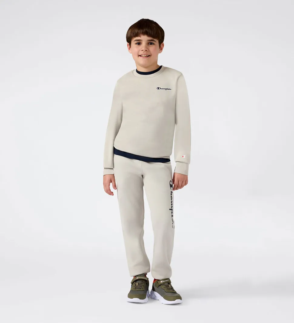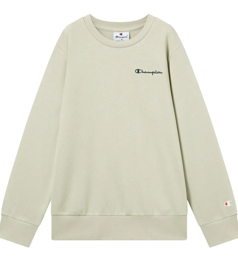 Flot Champion sweatshirt i beige med grønt skær og det klassiske Champion-logo broderet i navyblå på venstre bryst. Champion sweatshirten har lange ærmer og ribkanter ved alle åbninger. Indvendigt er der blødt, børstet bomuld.