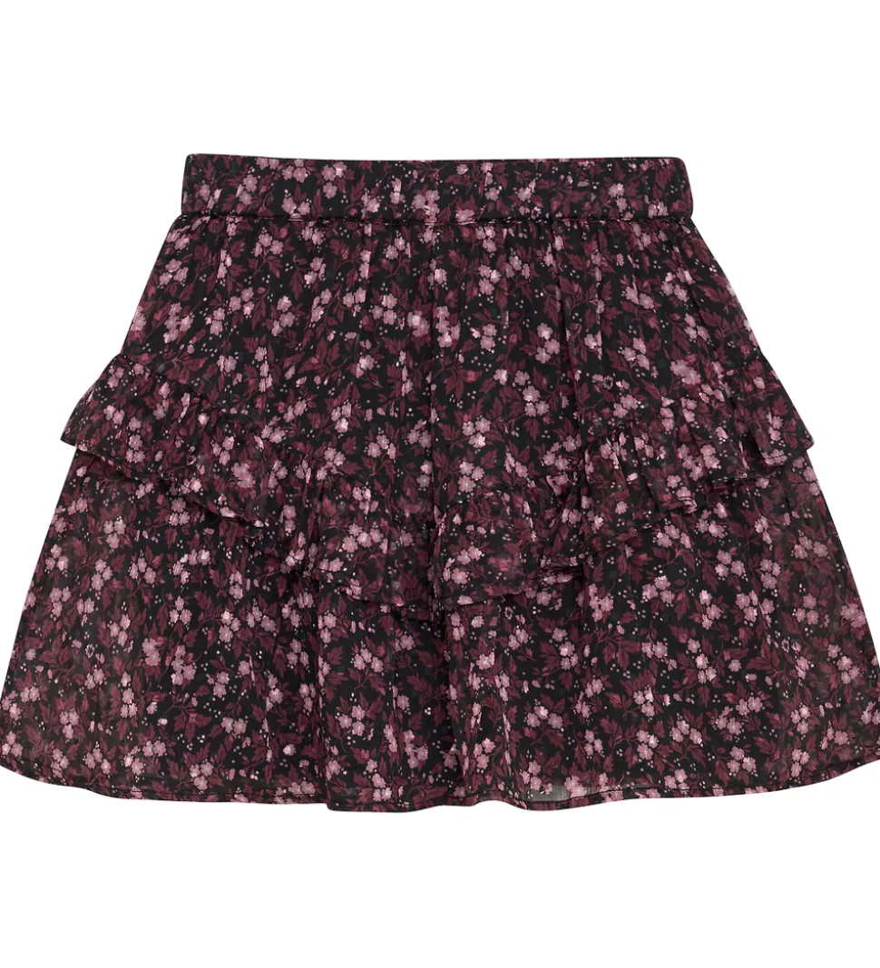 Elegant Creamie nederdel med mørke toner og et detaljeret blomsterprint. Nederdelen har en let og luftig struktur med flæsedetaljer, der giver et smukt fald. Creamie nederdelen har en elastisk kant i livet, der sikrer en behagelig pasform, og et inderskørt i glatvævet bomuld.