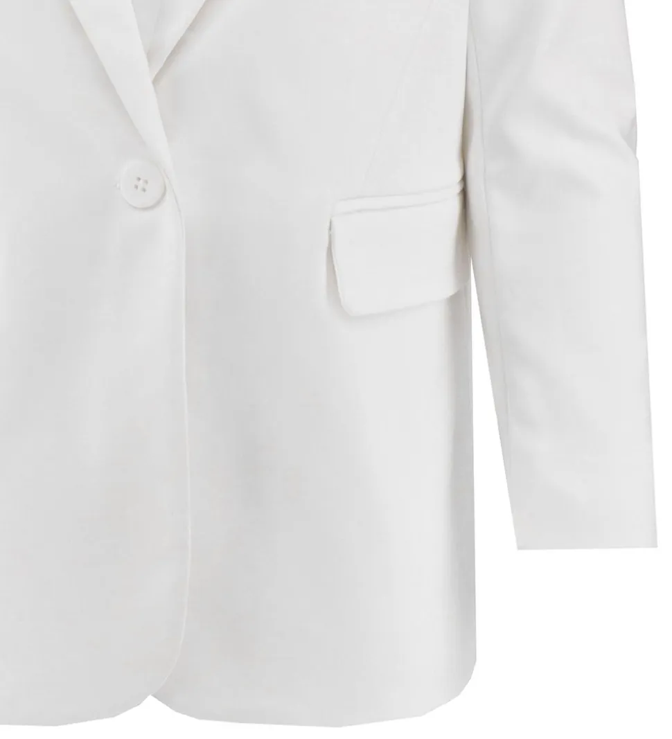 Designers Remix blazeren har lange ærmer og en flot krave i halsen. Blazeren åbnes fortil med én enkelt knap og fortil er der to lukkede lommer i siderne og én lukket brystlomme i venstre side. Bagpå ærmerne er der tre dekorative knapper og indvendigt er der glatvævet for. Blazeren er i en lækker kvalitet.