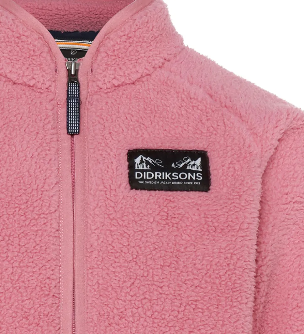 Skøn Didriksons fleecejakke i ensfarvet rosa teddyfleece.
