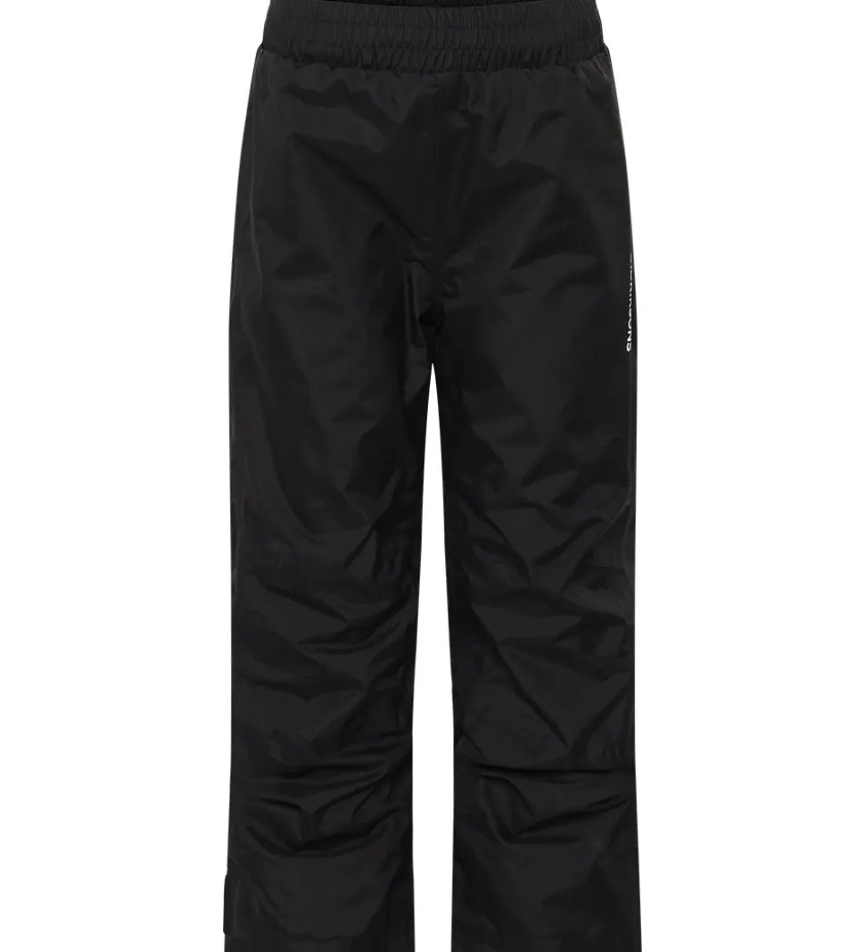 Skalbuksebenene kan strammes ind med velcro. Skalbukserne har et glatvævet for, og de er uden vattering.