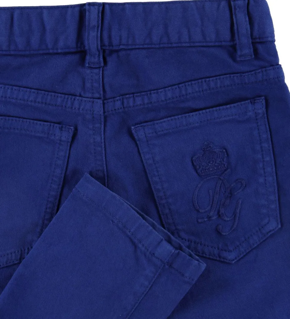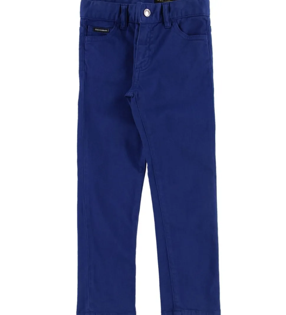 Lækre Dolce & Gabbana bukser i mørkeblå med broderede DG-initialer samt mærkets velkendte krone på højre baglomme.