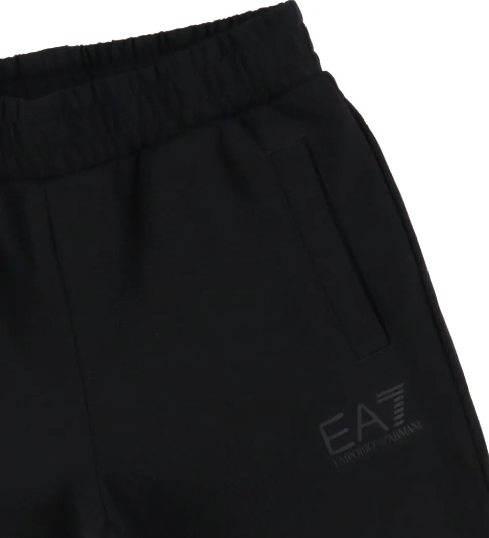 EA7 cardiganen har en høj hals, og den har bløde ribkanter. Cardiganen lukkes med en skjult lynlås, og i siderne er der praktiske lommer. Sweatpantsene har lange ben med brede kanter, og i livet har de en bred elastikkant, som kan strammes ind med en snøre på indersiden. I siderne er der praktiske lommer.