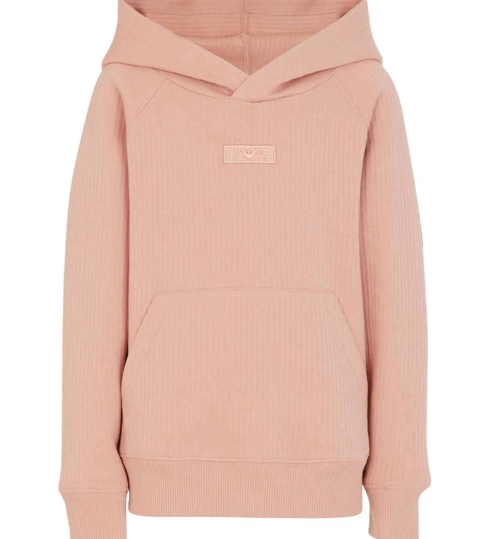 Fin Emporio Armani hættetrøje i rosa med en diskret quiltet struktur, der giver lodrette linker. Hættetrøjen har et stilfuldt, broderet logo på brystet. Emporio Armanis hættetrøje har en klassisk, rummelig kængurulomme og bløde ribkanter ved livet og ærmerne, der sikrer en god pasform. Hættetrøjen er lavet i en blød bomuldsjersery.