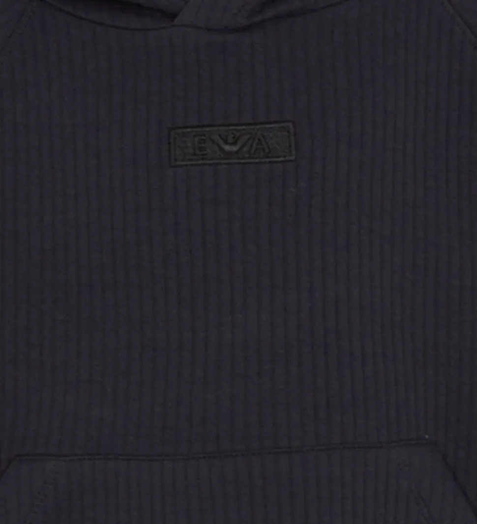Flot Emporio Armani hættetrøje i navy med en diskret quiltet struktur, der giver lodrette linker. Hættetrøjen har et stilfuldt, broderet logo på brystet. Emporio Armanis hættetrøje har en klassisk, rummelig kængurulomme og bløde ribkanter ved livet og ærmerne, der sikrer en god pasform. Hættetrøjen er lavet i en blød bomuldsjersery.