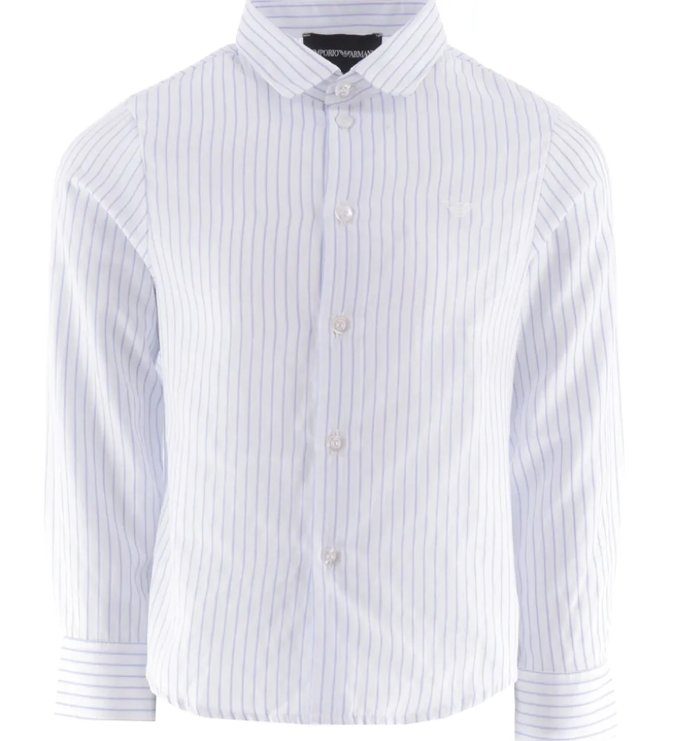 Flot Emporio Armani skjorte i hvid med smalle, lodrette striber i lyseblå.
