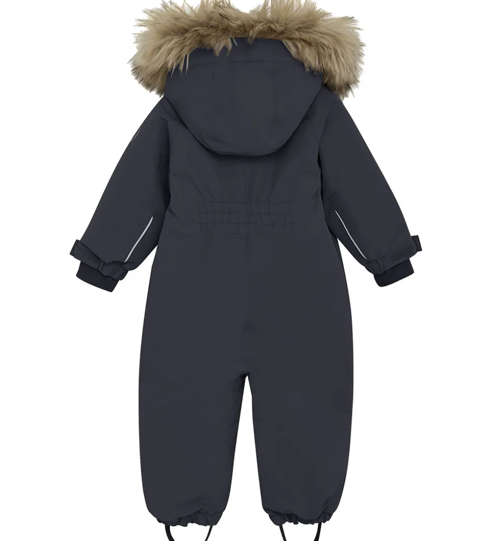 En Fant flyverdragten åbnes fortil ved hjælp af en skrå lynlås med en fleeceforet hagebeskytter og indvendig vindstolpe. Flyverdragten er justeret med en elastikindsats i ryggen.