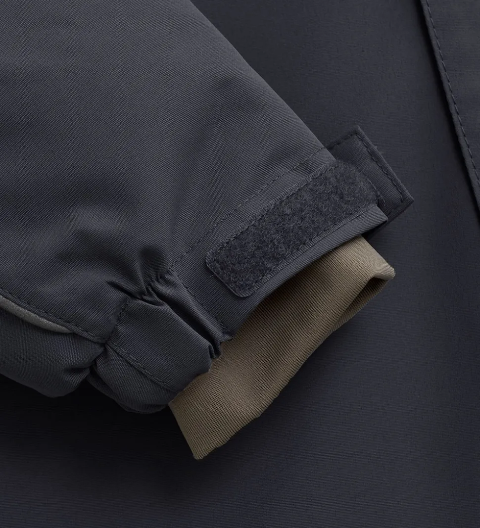 Ærmerne har praktiske snefang med brede kanter i strækbart polyester og med et hul til tommelfingeren, og ærme-elastikkanterne kan strammes ind med velcro. Benåbningerne har elastikkanter i åbningerne samt aftagelige, justerbare støvlestropper i gummi.