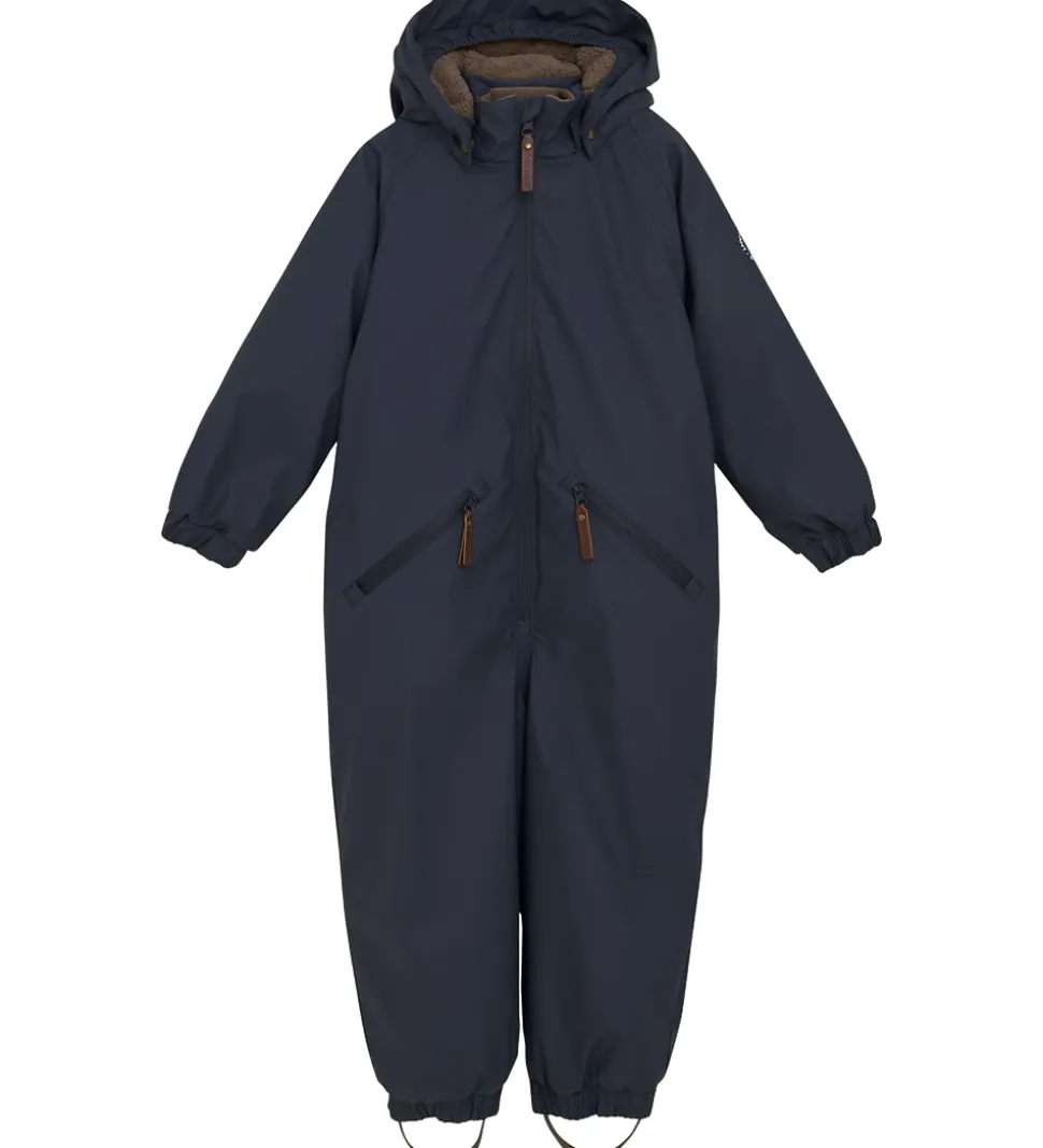 Flyverdragten er godt vatteret, og indvendigt har den et blødt for af teddyfleece i hætten og overkroppen, mens resten er med et glatvævet for.