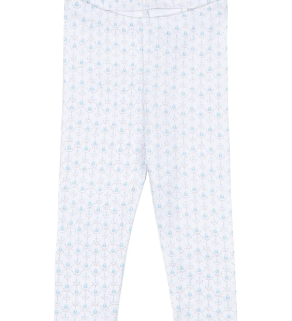 Smukke bukser fra Fanga Fontana i hvid med et delikat mønster af lyseblå sejlbåde og røde prikker. Fanga Fontana bukserne har en blød elastisk talje, der sikrer en behagelig pasform. Buksebenene afsluttes med sømløse kanter, hvilket giver et flot look.