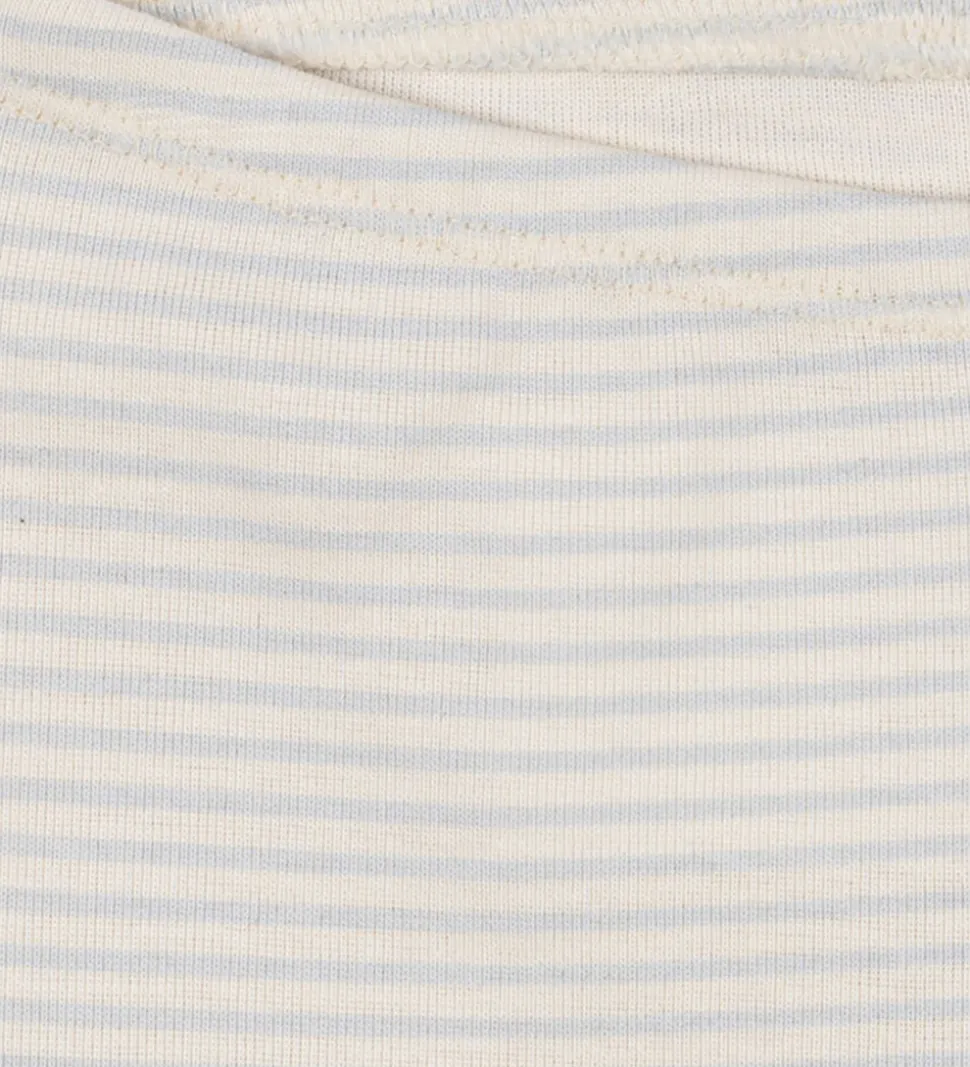 Flotte bukser fra Fanga Fontana i et klassisk stribemønster i lyseblå og hvid.