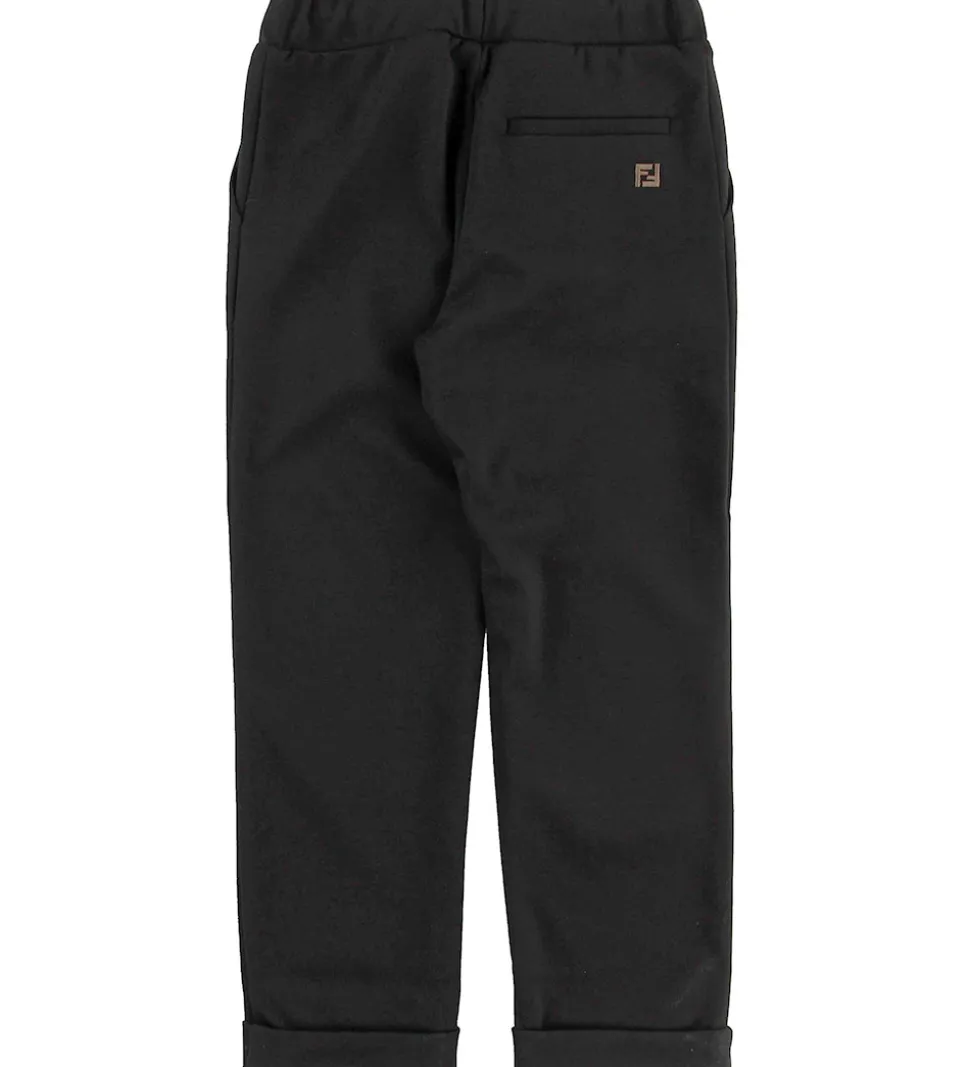 Lækre Fendi Kids buser i sort i en strækbar kvalitet. Bagpå i højre side er det broderet et brunt Fendi-logo.