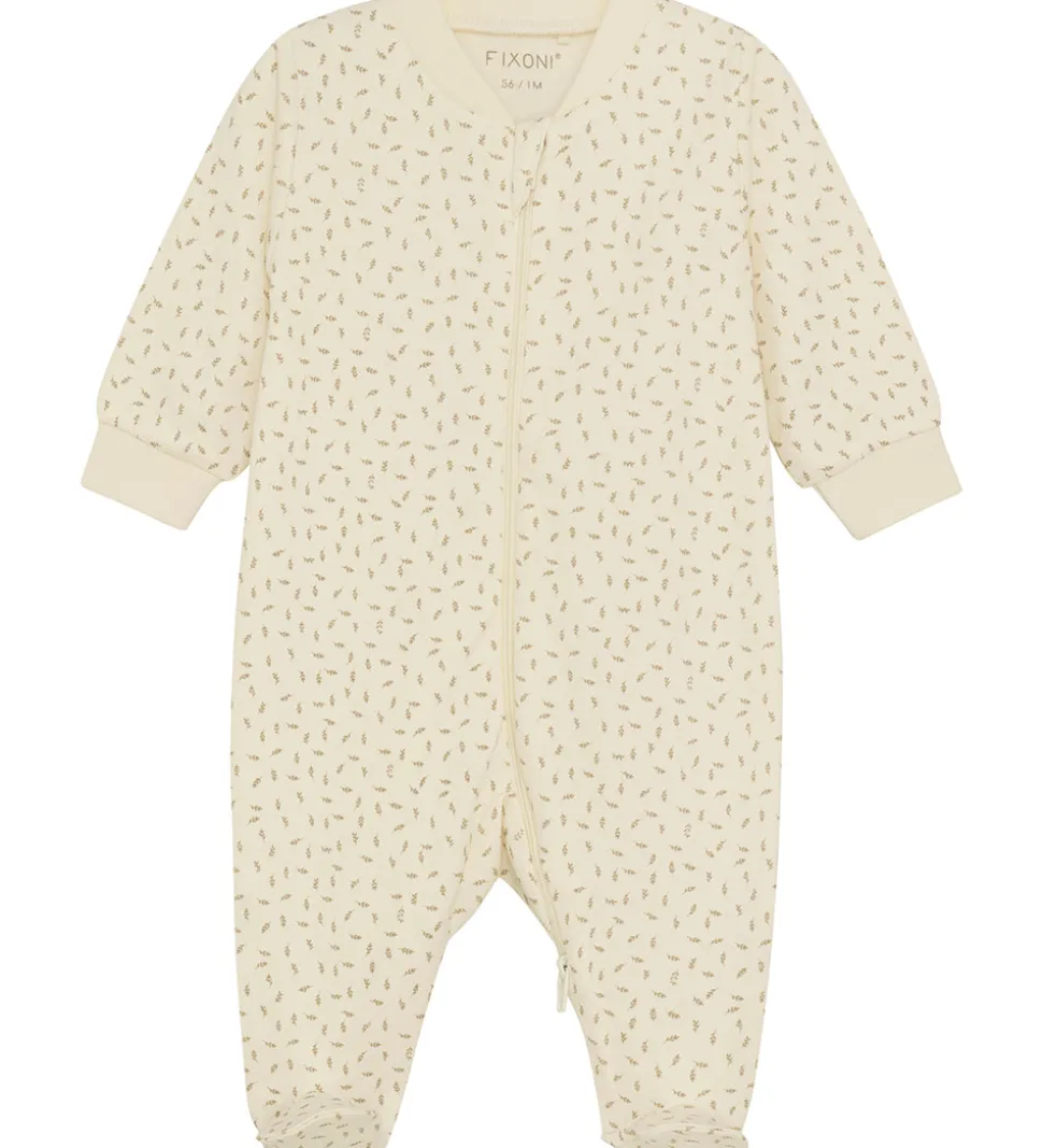 Lækker Fixoni natdragt i hvid med et alloverpint med brune blade.