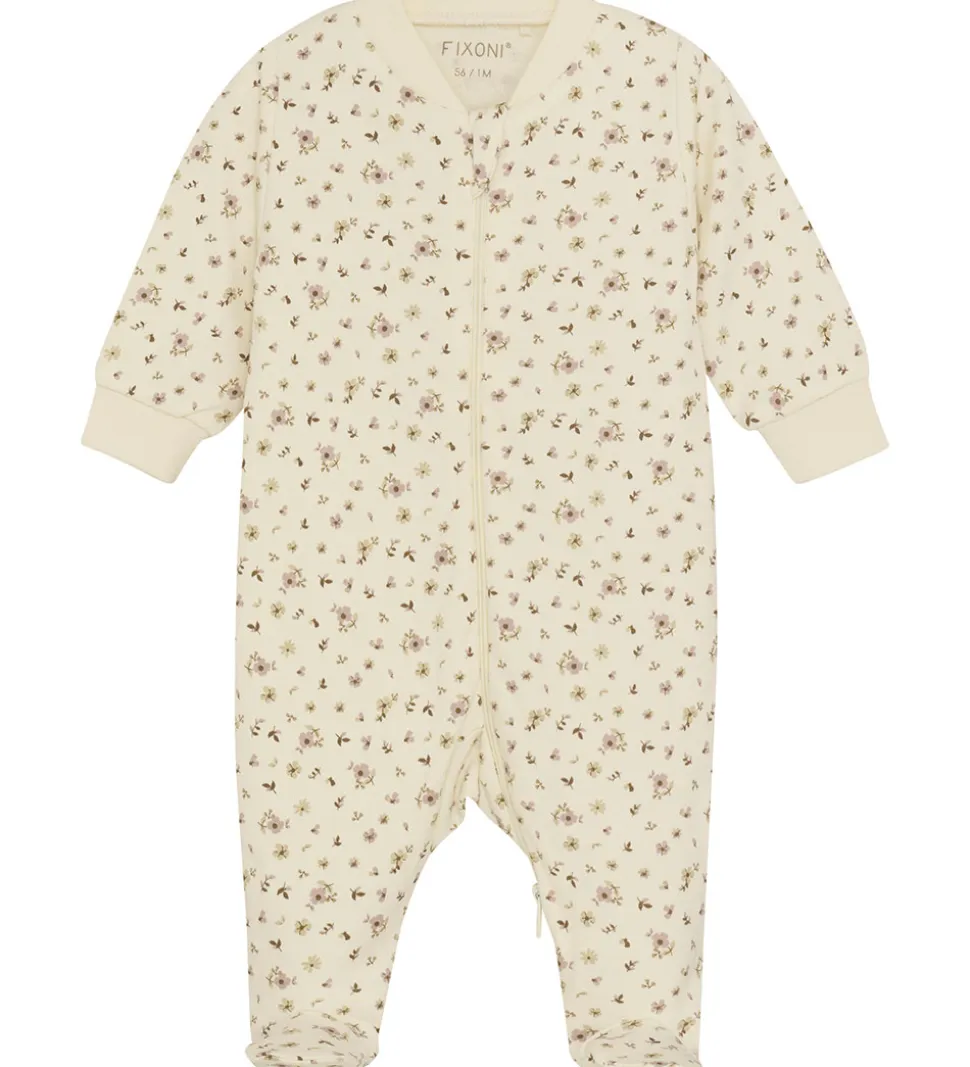 Sød Fixoni natdragt i hvid med et alloverprint med blomster i rosa nuancer.