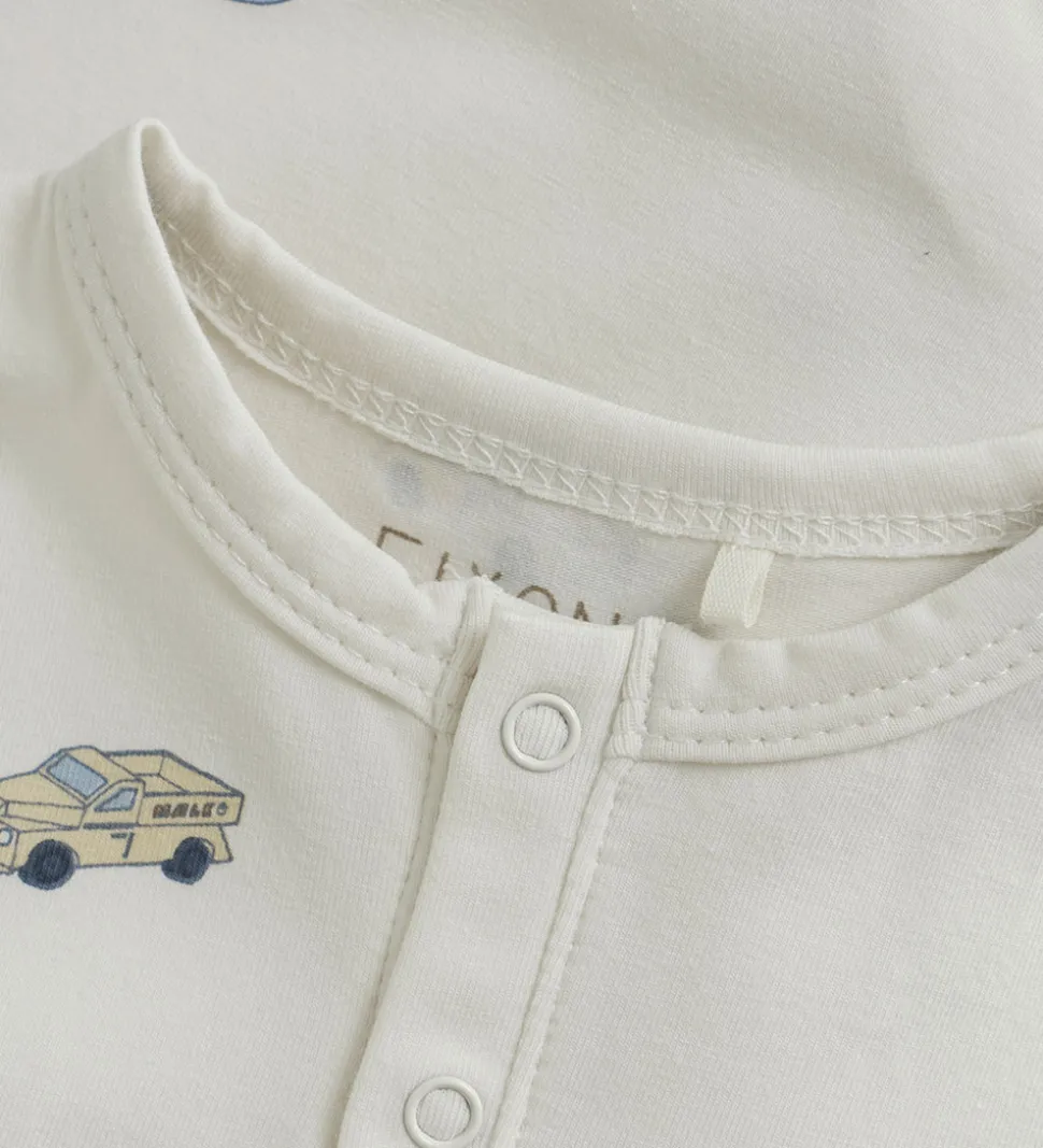 Skøn Fixoni sommerdragt med korte ærmer i en lys farve med et farverigt bilprint på fronten. Sommerdragten er ideel til varme dage.