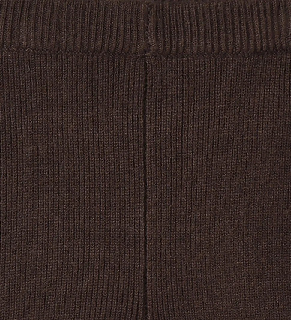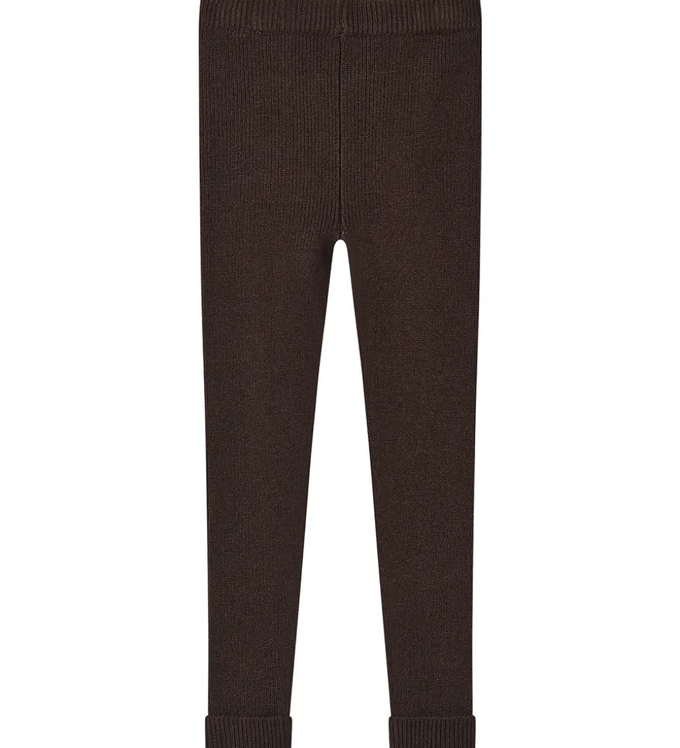 Skønne Fliink leggings i en dyb, brun farve med en strikket ribstruktur. Fliink leggingsene har en elastisk talje og opsmøgede benkanter, som giver et enkelt look.