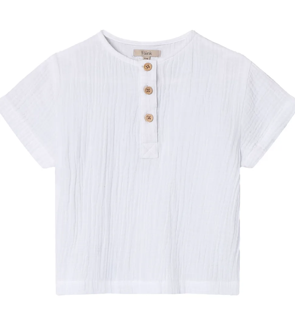 Elegant Fliink skjorte i hvid med korte ærmer. Skjorten har en klassisk knaplukning i fronten, der giver et tidløst look. Fliink har skabt en enkel skjorte, der er let at kombinere med hverdagens outfits.