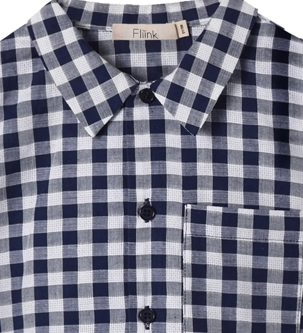 Flot Fliink skjorte med korte ærmer i en klassisk blå og hvid ternet mønster. Skjorten har en praktisk lomme på brystet og en knaplukning foran, der giver et stilrent look.