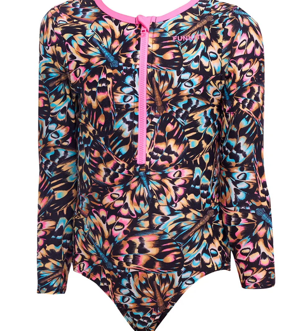 Funkita badedragten har lange ærmer og en rund halsudskæring. Den kan åbnes fortil med en lynlås med indvendig vindstolpe og hagebeskytter. I benåbningerne er der elastiske kanter, som sikrer en god pasform. Badedragten er fremstillet i en strækbar kvalitet.