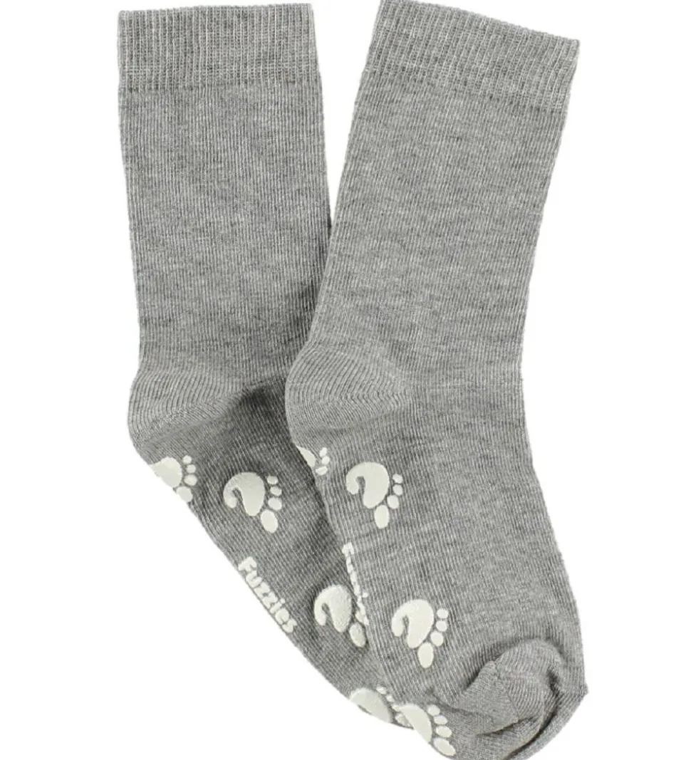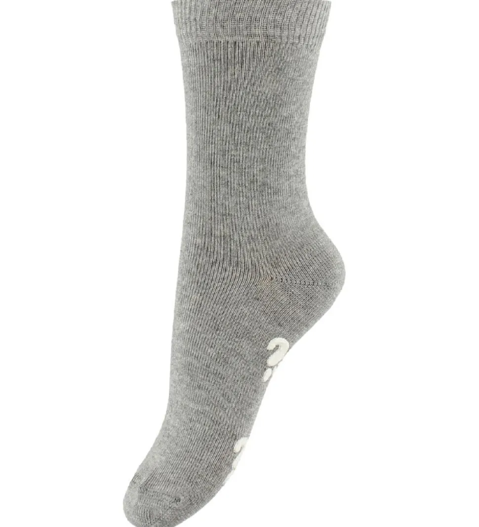 Smarte Fuzzies strømper i meleret grå med skridsikre detaljer under foden.