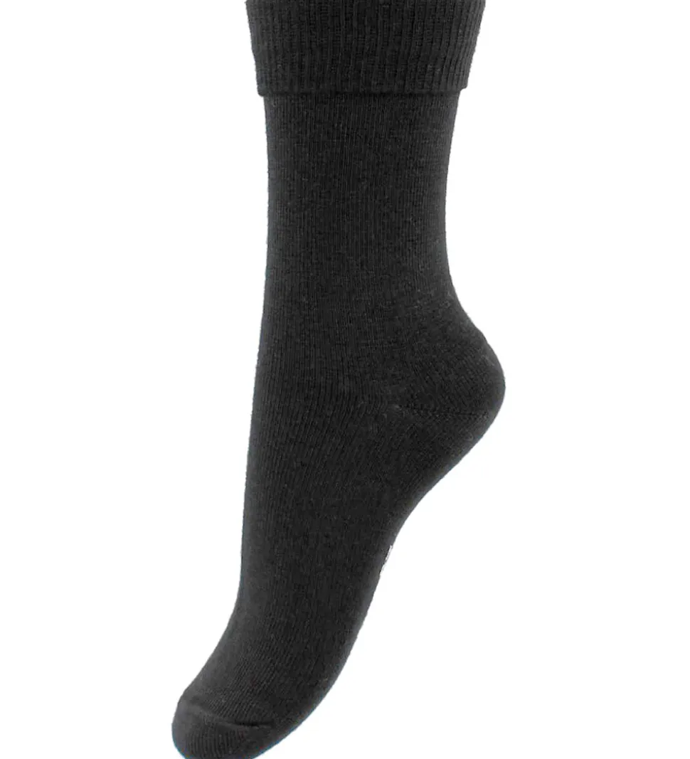 Strømperne har en almindelig længde skaft med en elastisk kant i toppen, så strømperne ikke glider ned. Der er et lille ombuk på skaftet, som kan foldes ud, hvis dette ønskes.