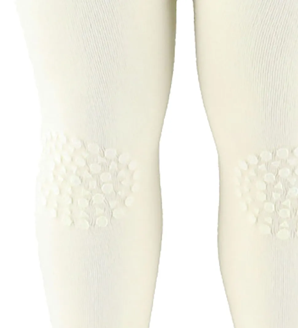 Strømpebukserne har skridsikre dutter både under fødderne, oven på fødderne ved tæerne og på knæene, så barnet nemmere kan kravle over glatte overflader som trægulv eller klinker.