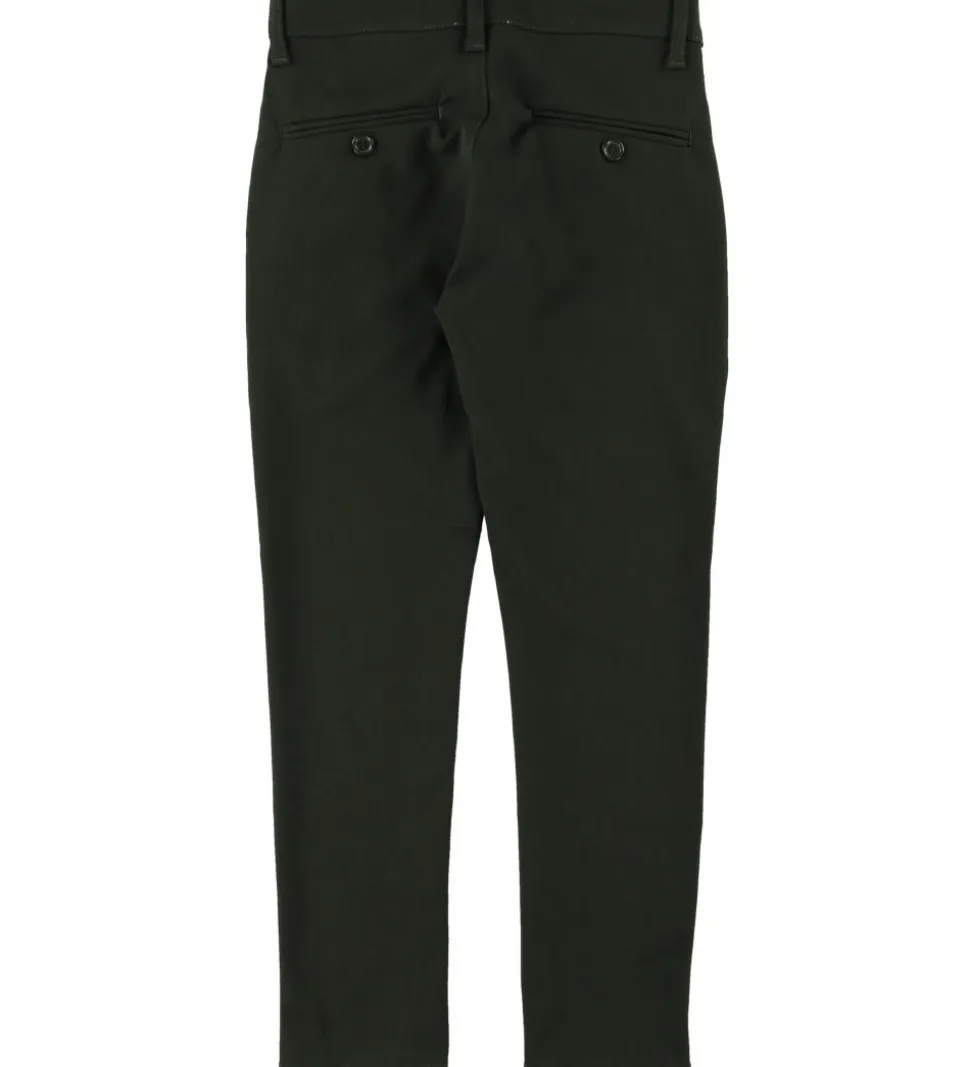 Grunt bukserne har lange ben, og de har indvendige justerbar elastikkanter og bæltestropper i livet. Bukserne åbnes fortil med knap og lynlås. Fortil har bukserne gode dybe lommer i hver side, og paspoleret lommer bagpå.
