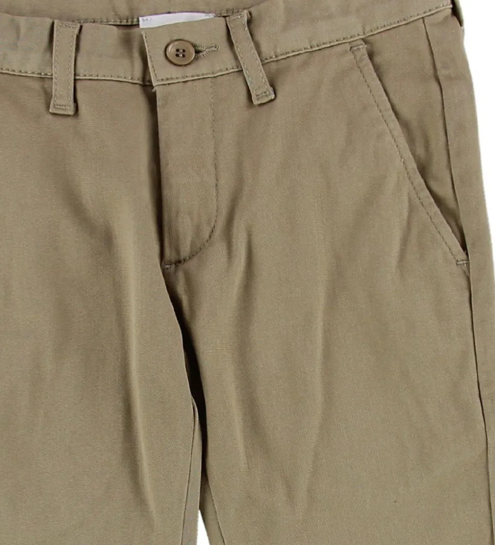 Grunt bukserne har indvendige justerbar knapper og bæltestropper i livet. På fronten er der to åbne lommer og bagpå er der to snyde lommer. Bukserne åbnes på fronten med en knap og en lynlås.
