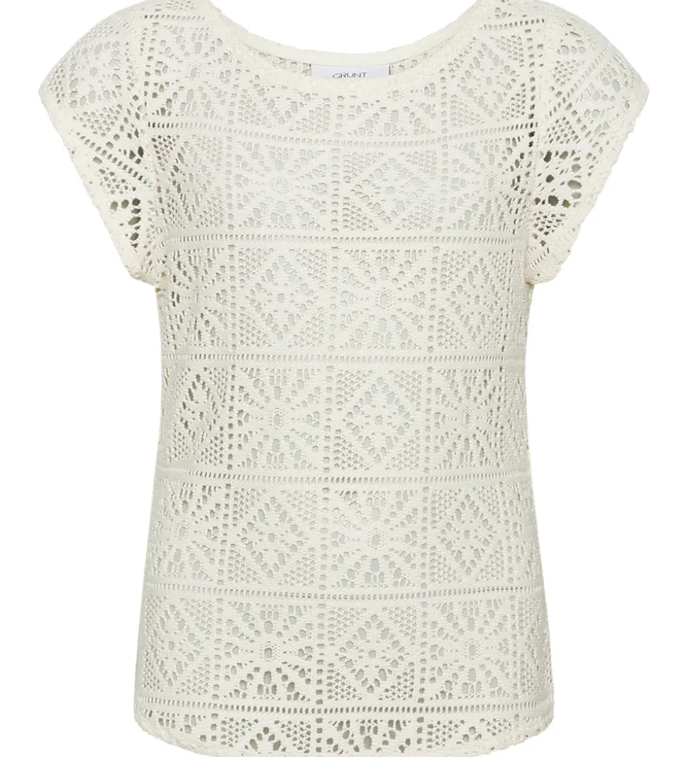 Yndig Grunt top i hvid med et flot hulmønster over det hele.