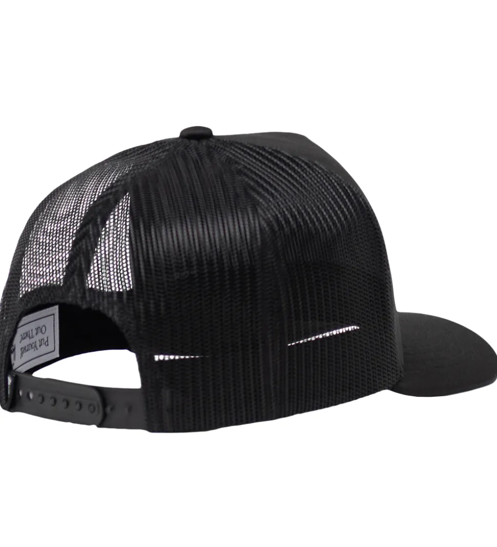 Lækker Herschel kasket i sort med hvidt logoprint på fronten og sort net bagtil. Kasketten har en buet skygge og kan justeres med en plastiklukning i nakken.