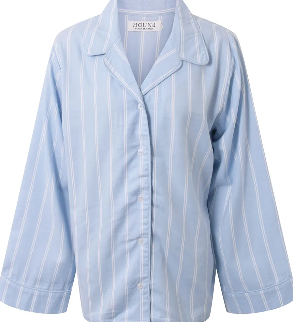 Flot Hound natskjorte i lyseblå med lodrette, hvide striber. Natskjorten er lavet i en fastvævet kvalitet.