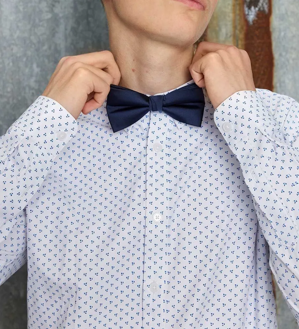 Fin Hound skjorte i hvid med et allover print af små, blå striber, som laver et flot mønster.