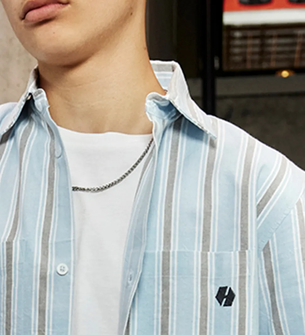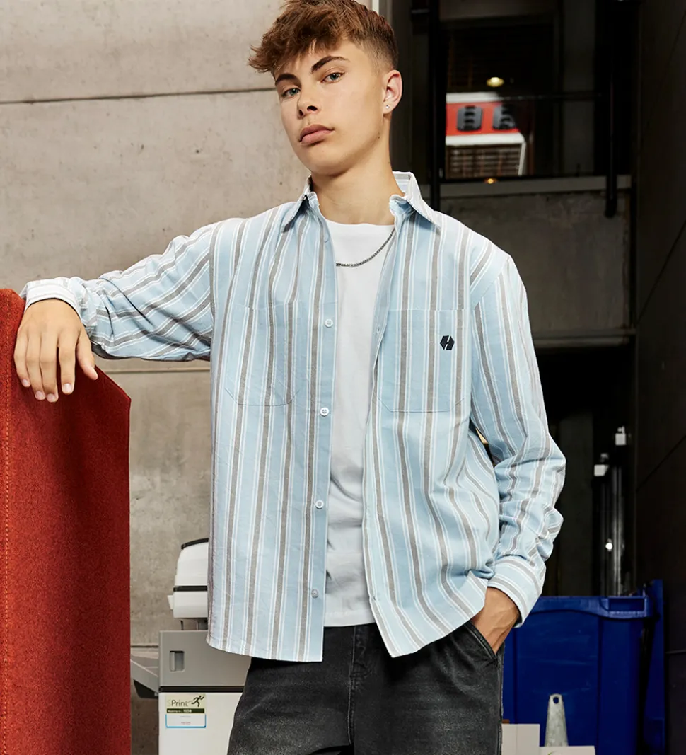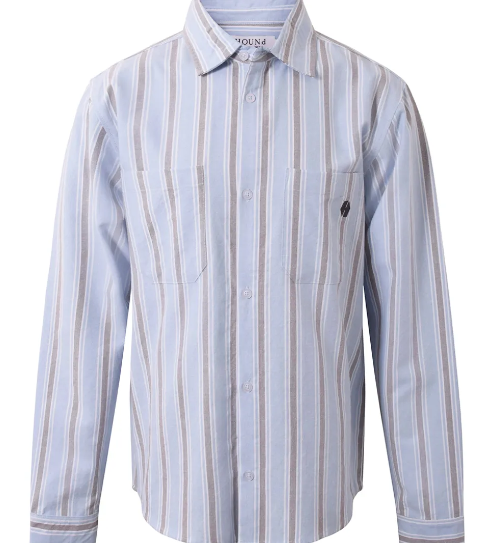 Lækker Hound skjorte med lange ærmer i en lys blå nuance med flotte striber. Skjorten har en klassisk krave og to brystlommer, hvilket tilføjer et stilfuldt og funktionelt præg.