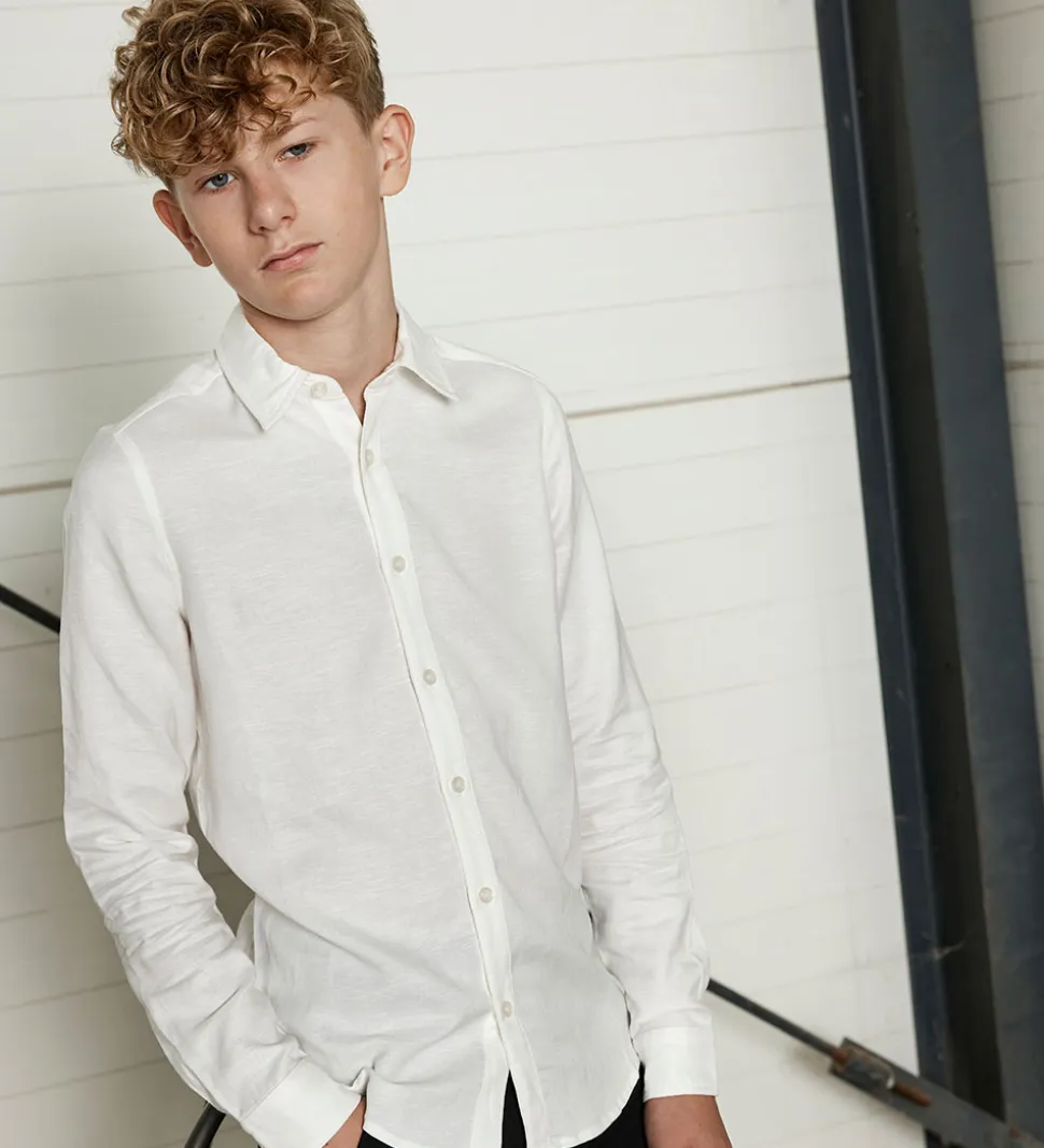 Flot Hound skjorte i ensfarvet hvid i en fastvævet kvalitet i lækker blanding af hør og viskose.